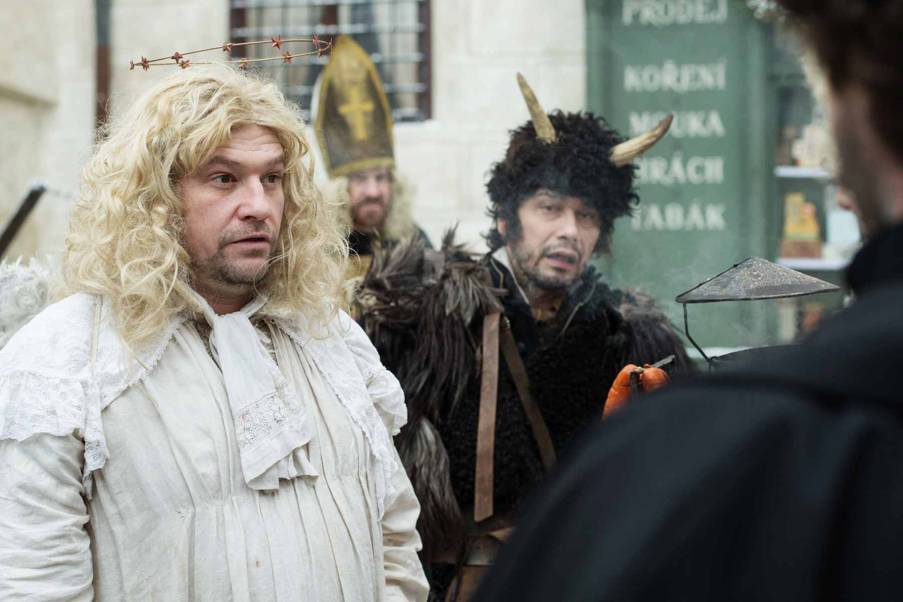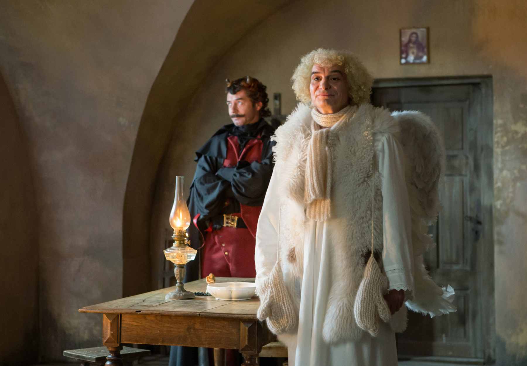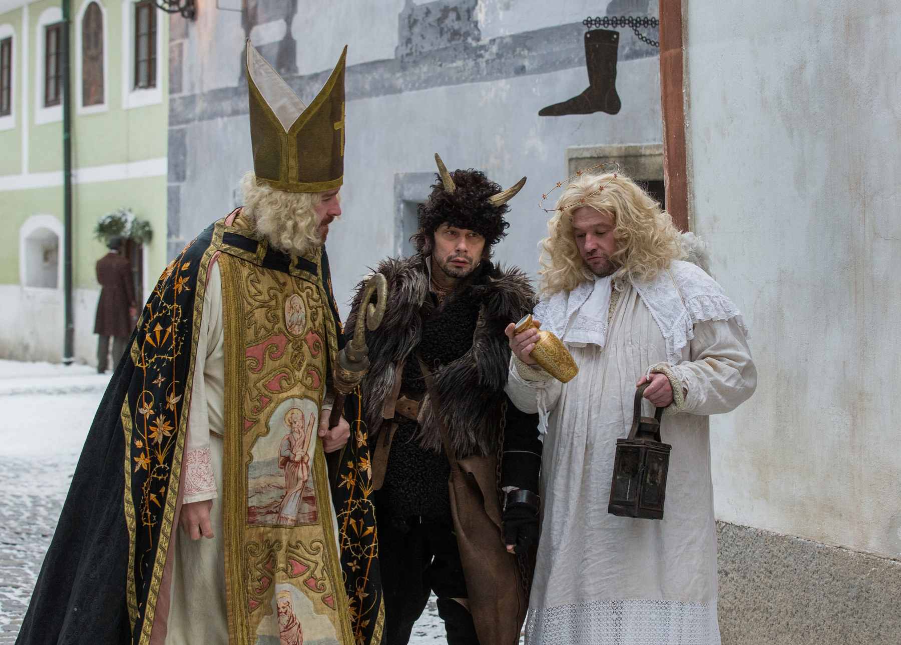 Ve filmu dostaly svaté postavy symbolickou podobu díky hercům, kteří nesou stejné křestní jméno jako jejich role. Josef Abrhám se objeví jako svatý Josef. Veronika Žilková ztvární svatou Veroniku, Martin Huba svatého Martina a Petr Čtvrtníček svatého Petra. Matěj Hádek hraje svatého Matěje a Lucie Bílá svatou Lucii. Do rolí archandělů byli obsazeni Gabriela Osvaldová jako Gabriel a Michal Horáček jako Michael. Jedinou výjimkou je Panna Marie, kterou hraje Klára Issová.