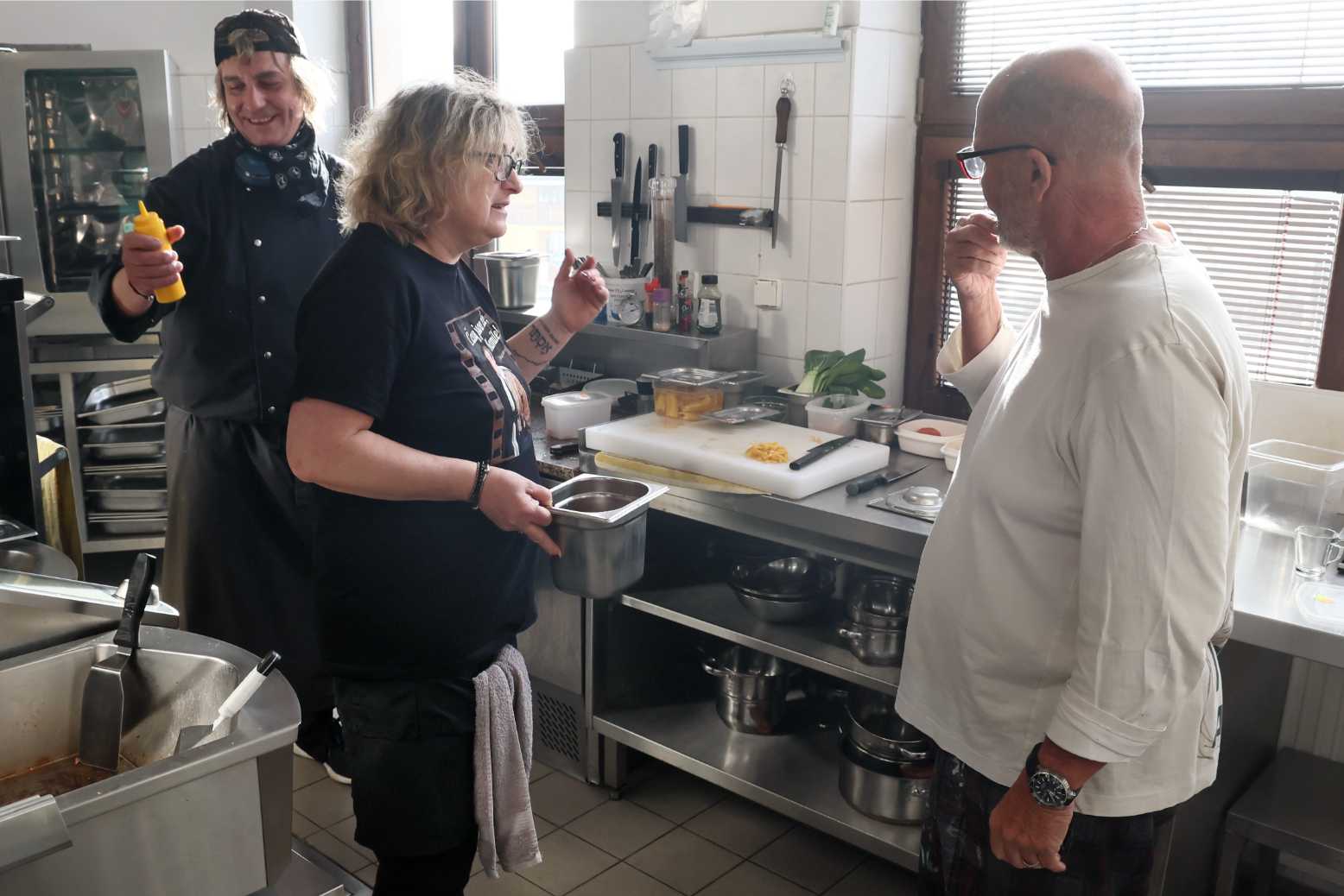V kuchyni pokračoval stejně nekompromisně: „Burgry jsou hrozné, houska suchá, potřebovala by lepší péči. A jestli ji máte z pekařství, neříkejte mi jeho název. Odehrává se tu něco, čemu se říká líné vaření. Malinko na to přisíráte. Pokud tedy na to úplně neserete.“ Šéf si prostě nebral servítky.