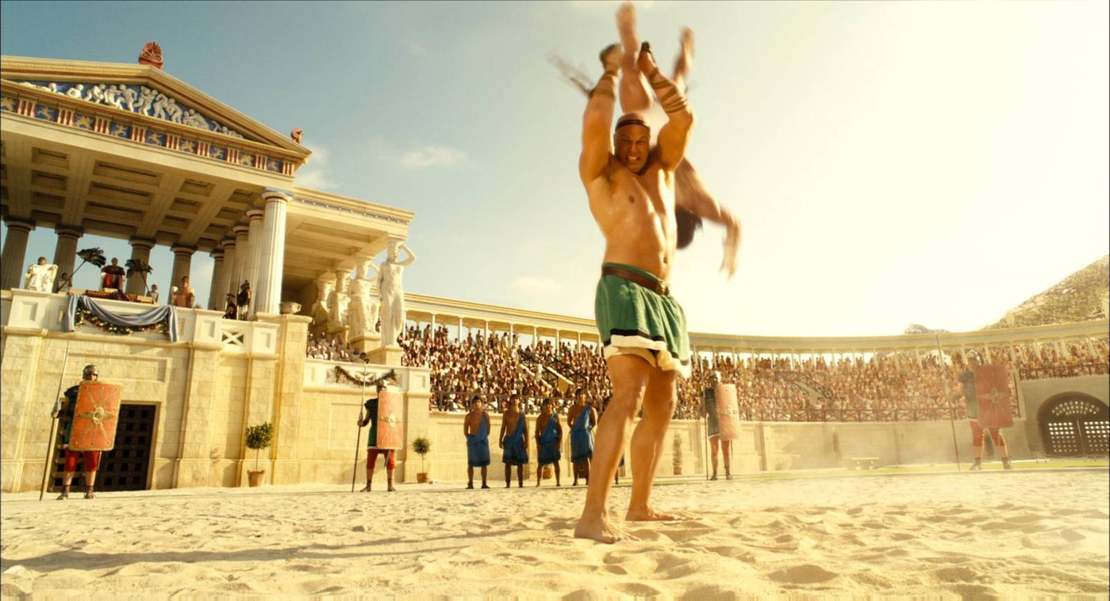 Tvůrci chtěli z olympijských her udělat skutečnou přehlídku celebrit. Původní plány byly ještě ambicióznější než výsledný film. V roli římského atleta se měl objevit Jean-Claude Van Damme. Jeho postava se měla jmenovat Doubleimpactix, což byl jasný odkaz na jeho akční hity. Vše bylo domluvené, ale den před natáčením herec svou účast zrušil. Langmann musel přes noc přepsat scénář.