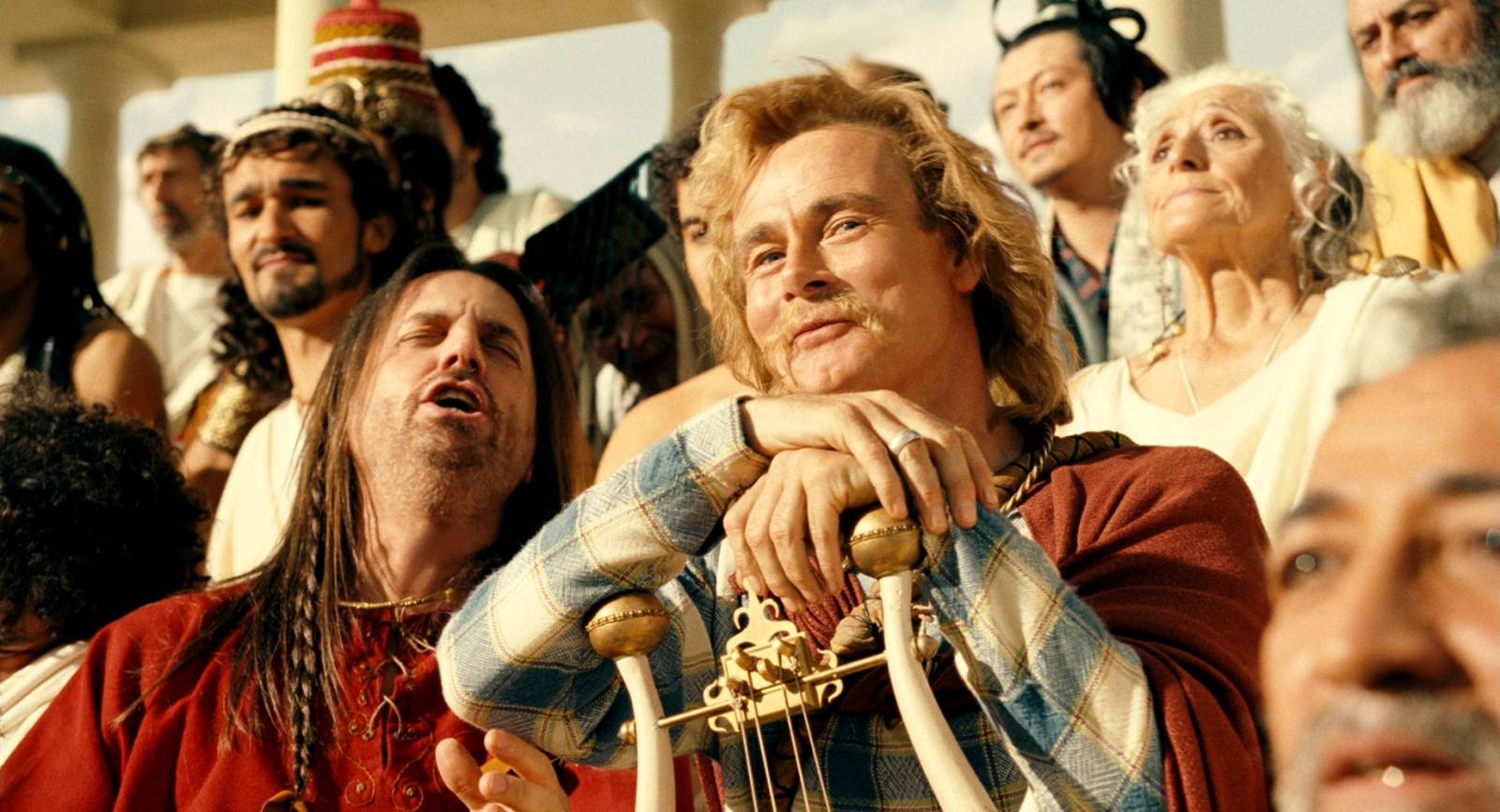 Když se na plátně poprvé objeví celá jeho postava, zazní dokonce hudební motiv Ennia Morriconeho ze snímku Sicilský klan. Delon si natáčení užíval, a to i přesto, že se musel dělit o prostor se svým filmovým synem Brutem. Toho ztvárnil Benoît Poelvoorde, který do role vnesl prvky hysterie a fyzické komedie. Historici by sice namítli, že skutečný Brutus nebyl Caesarovým synem, ale v tomto univerzu šla historická přesnost stranou.