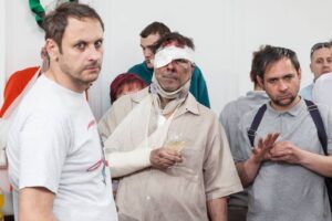 Kaskadér v base a rány do rozkroku