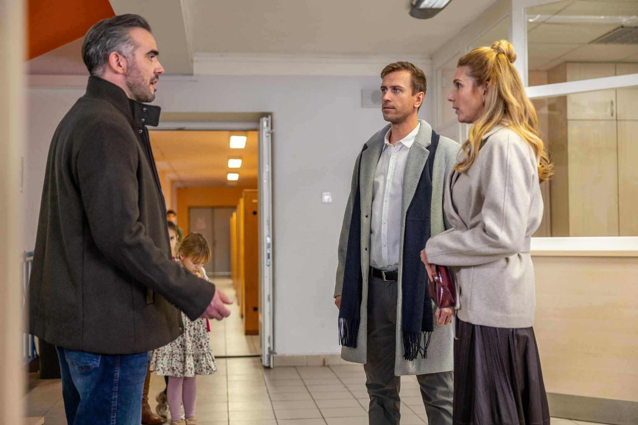 Když dorazí Adriana s Prokopem do školy, aby Klárce předala zapomenutou učebnici, narazí tam na Kokešovi. Ti se na chodbě ostře hádají o to, kdo měl dceru vyzvednout a čí je to vina. Musí zasáhnout Prokop a usměrnit je. Všemu přihlíží děti, dokonce i jejich dcera.