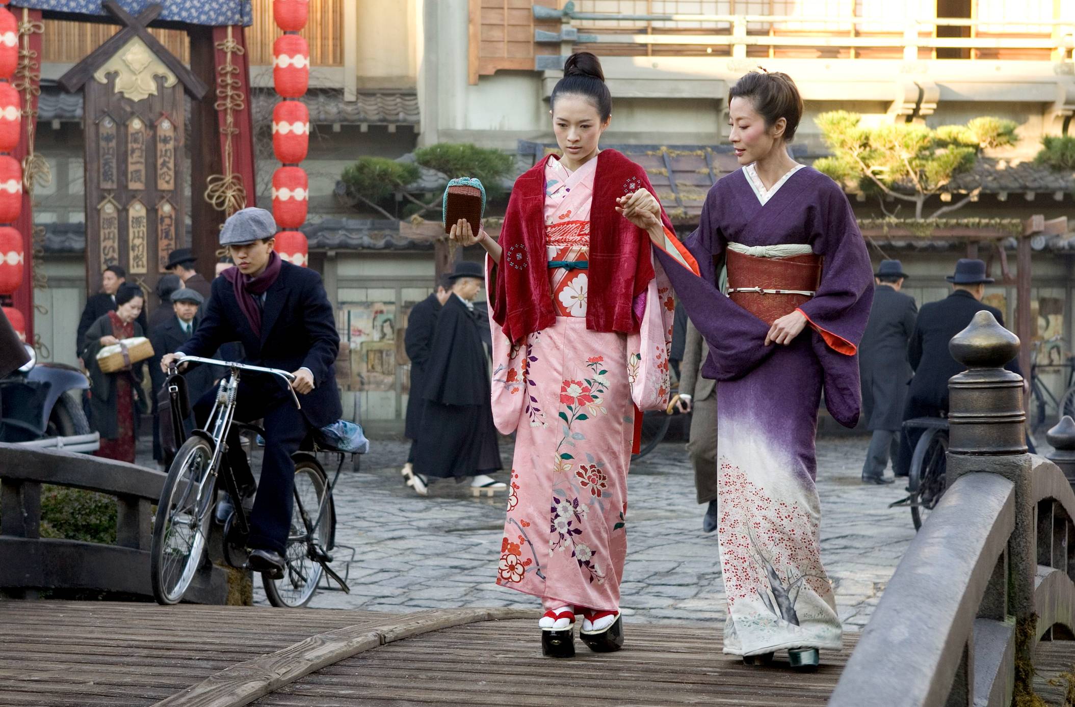 Hlavní hvězdy Zhang Ziyi a Gong Li v době práce na filmu vůbec neovládaly anglický jazyk. Své repliky se musely učit pouze foneticky a často vůbec netušily co přesně v danou chvíli říkají. Zvukaři museli v postprodukci pracně skládat jednotlivé slabiky k sobě pro dosažení srozumitelnosti. Režisér Rob Marshall navíc použil na Zhang Ziyi trik při scéně odchodu její kolegyně Michelle Yeoh. Herečka nebyla o odchodu informována a její zmatená reakce v záběru je naprosto autentickým projevem překvapení.