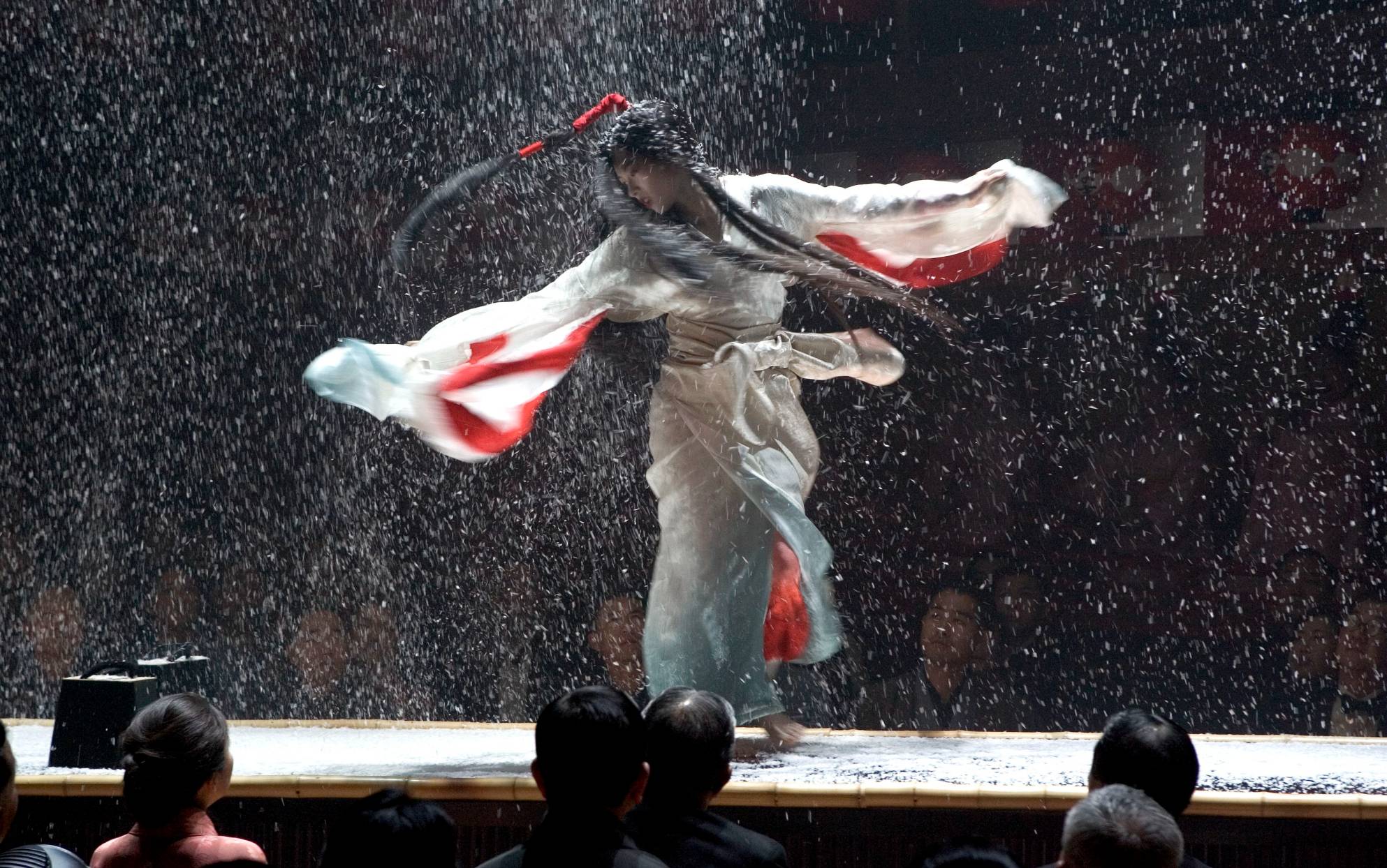 Herečka Zhang Ziyi musela po celou dobu natáčení snášet utrpení spojené s nošením speciálních modrošedých kontaktních čoček. Tato estetická změna byla nezbytná pro zachování věrnosti literární předloze a jejímu popisu hlavní hrdinky. Hvězda později veřejně přiznala silnou alergickou reakci na tento cizí předmět v oku. Každý pohled do kamery pro ni znamenal intenzivní fyzickou bolest a značné nepohodlí. Přes tyto zdravotní komplikace musela podávat profesionální výkony v náročných scénách.