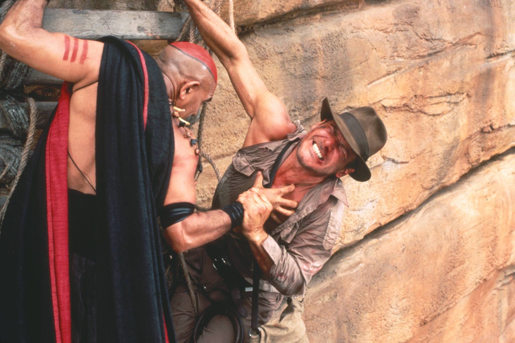 Jedna z nejbizarnějších historek z placu se týká scény, kdy je Indiana Jones zajat a bičován v chrámu. Harrison Ford byl připoután k velkému kameni a čekal na pokyn režiséra. Místo toho se však objevila zpěvačka Barbra Streisand v koženém oblečku dominy.