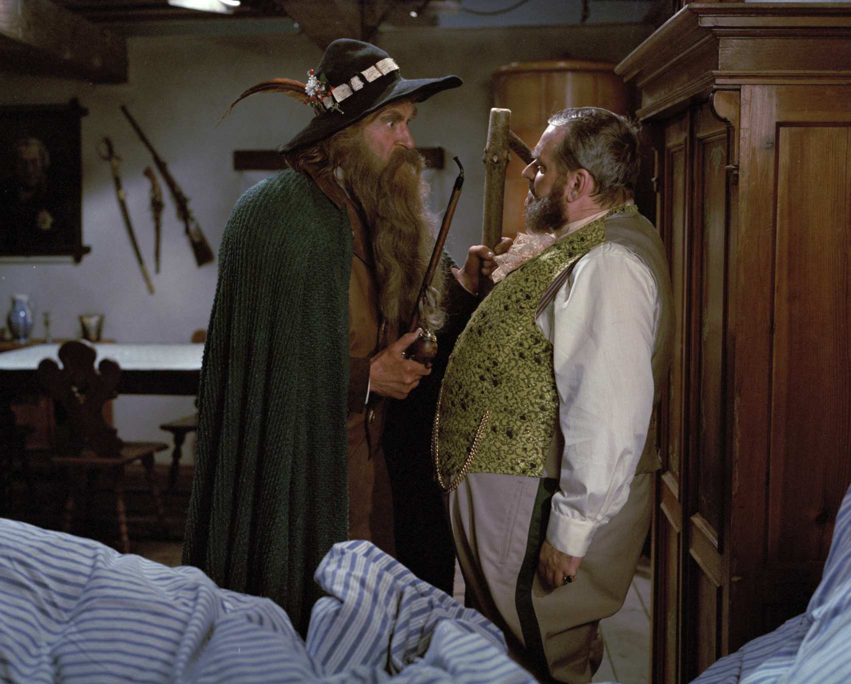 František Peterka, představitel Krakonoše, byl celoživotní nekuřák. Přesto ho filmaři nutili, aby v každé scéně bafal z dýmky. Někdy se natáčení muselo přerušit, protože mu to dělalo špatně.