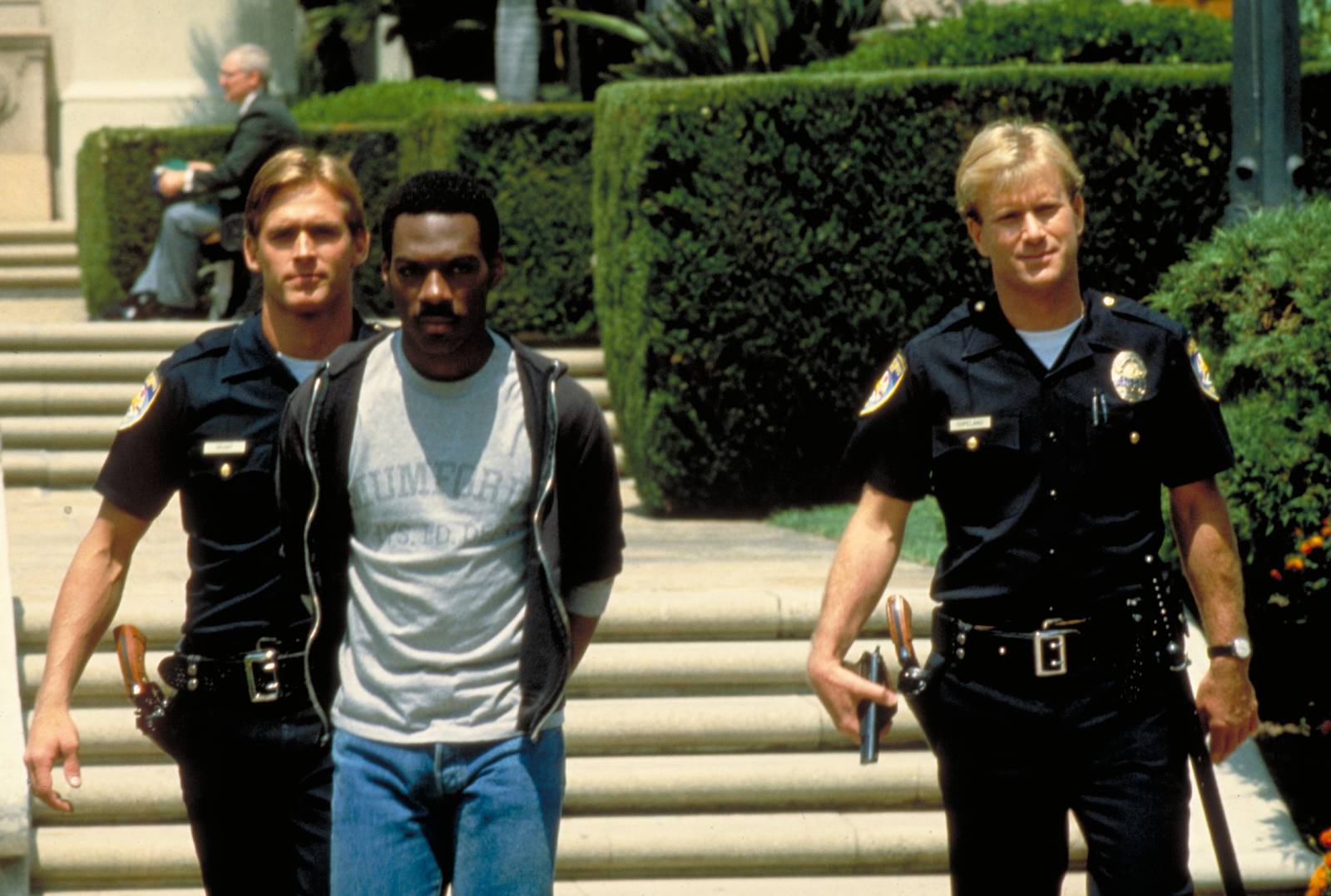 Jeho herečtí kolegové John Ashton a Judge Reinhold prožívali během společných záběrů s rozjetým komikem skutečné fyzické utrpení. Murphyho improvizace byly tak neuvěřitelně vtipné, že oba představitelé detektivů museli vynaložit nadlidské úsilí k zachování vážné tváře. Ashton se v zoufalství často kousal do vlastní ruky nebo si zakrýval obličej, aby v záběru nepropukl v hlasitý smích. Reinhold zase volil metodu silného štípání do vlastních stehen schovaných v kapsách u kalhot, čímž se snažil přebít nutkání k smíchu ostrou bolestí.