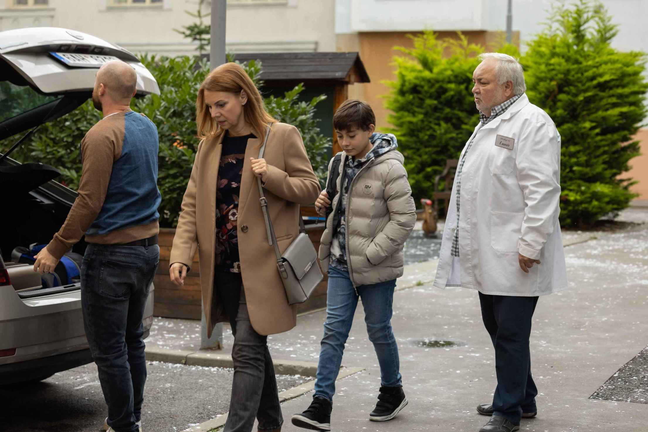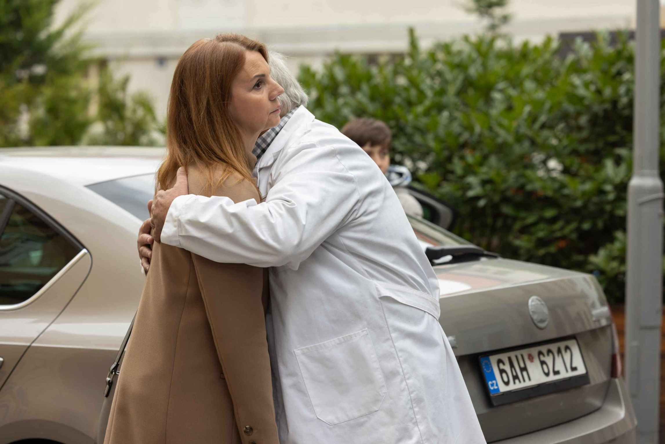 Vrcholem odcizení je moment, kdy Kateřina odmítá Lumírův odvoz na letiště a volá si taxík. Odmítá se s ním pak loučit i u auta, ale na jeho žádost o obejmutí přistoupí. To je ale všechno – nezvedne ruce, nedá mu pusu. Nic. Nechá se obejmout a mizí v taxíku.