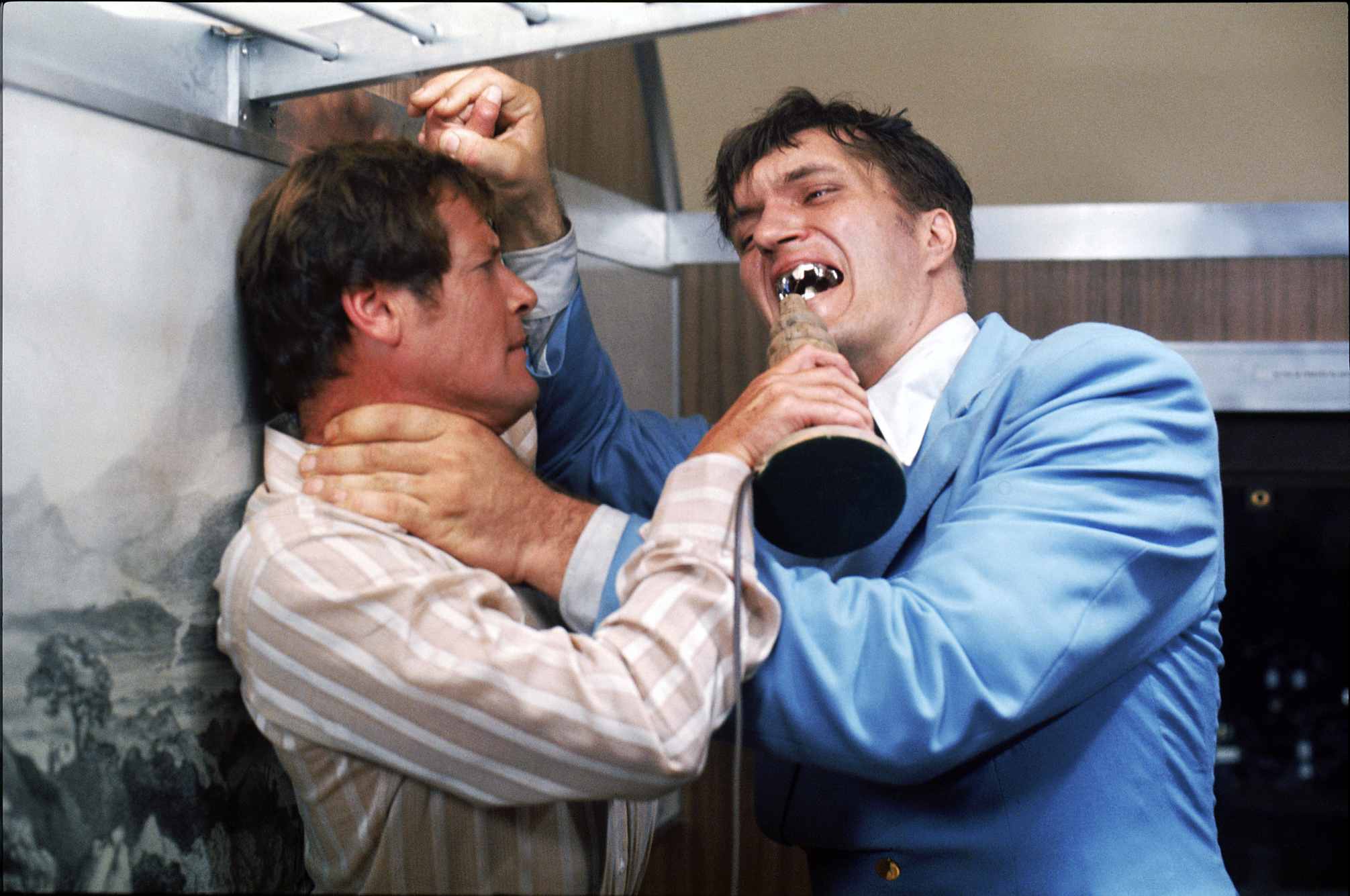 Stromberg na Bonda nasadí svého nejvýkonnějšího kata, obra jménem Čelisti. Pro jeho představitele Richarda Kiela však natáčení znamenalo fyzické utrpení. Ikonické kovové zuby byly tak nepohodlné, že je herec v ústech nesnesl déle než 35 vteřin. S Barbarou Bach se Kiel setkal před kamerou znovu o rok později ve filmu Oddíl 10 z Navarone, kde si opět zahráli protivníky.