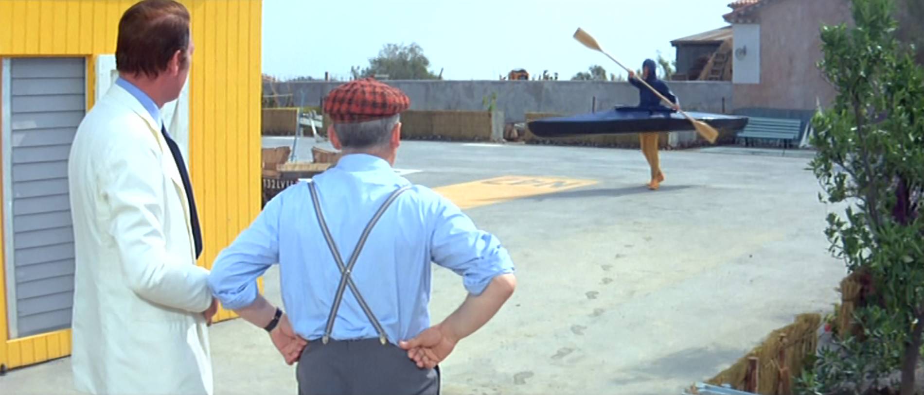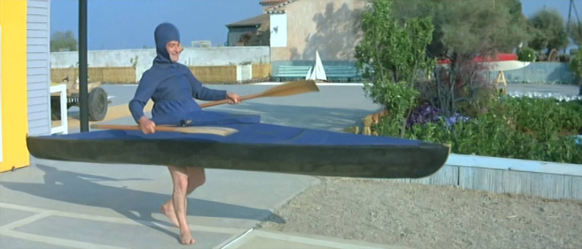 Pozornému divákovi neunikne jeden historický paradox. Ve scéně, kde Funès a Michel Galabru plují na lodičce přestavěné ze záchodové budky přístavem v Toulonu, se v pozadí tyčí majestátní silueta bitevní lodi. Jde o křižník Jean Bart, spuštěný na vodu již v roce 1940. Loď, která přežila druhou světovou válku a potopení v Casablance, byla v době natáčení už vyřazena a čekala na sešrotování, k němuž došlo o dva roky později. Film tak nevědomky zachytil jeden z posledních obrazů tohoto ocelového giganta.