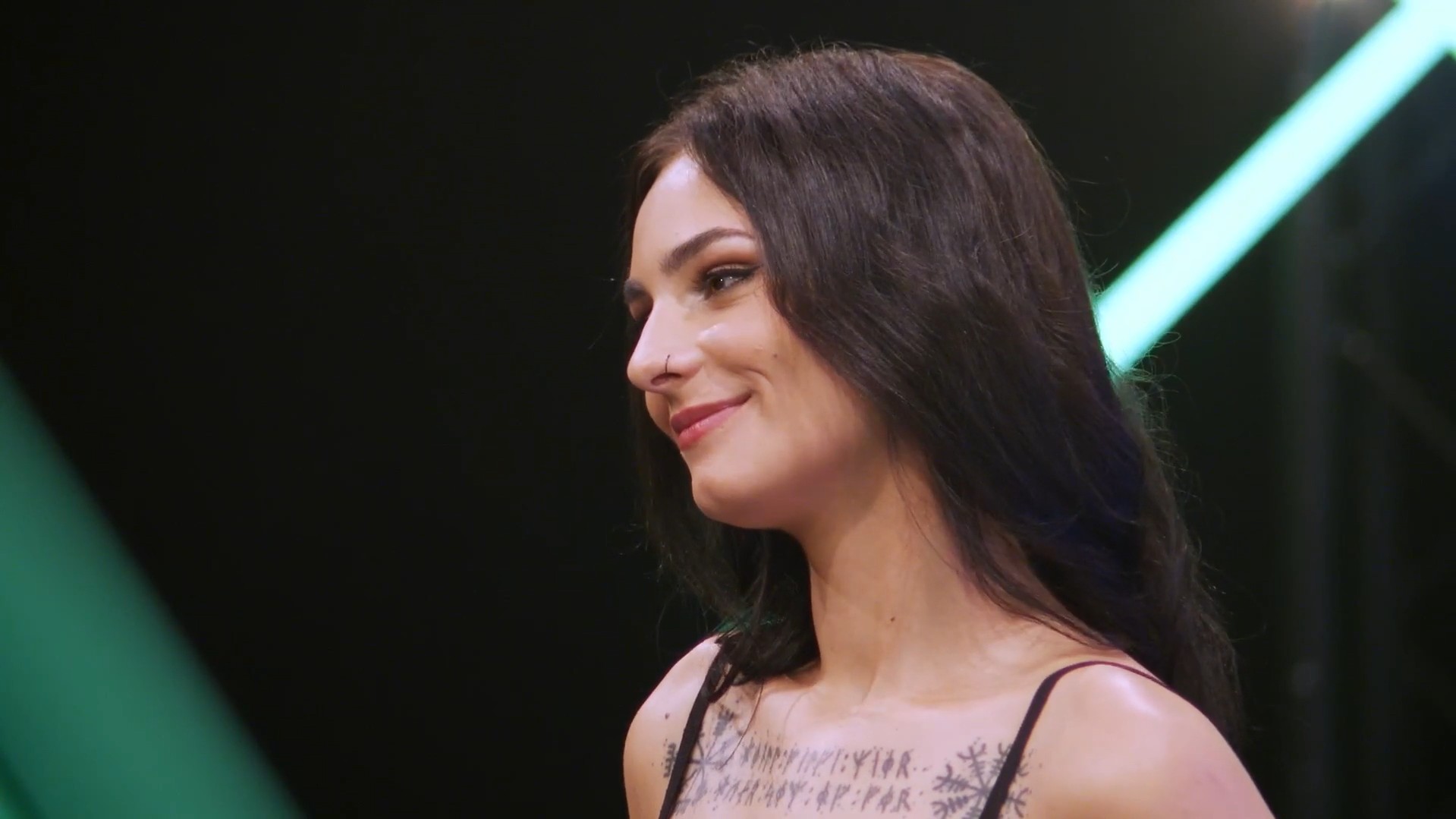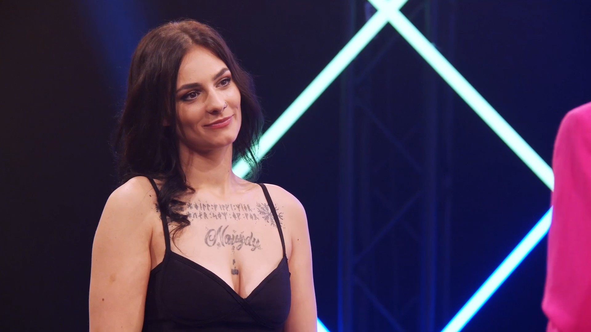 Její vizáž s výrazným tetováním dává tušit silnou osobnost. O svém přístupu k odhalování těla má naprosto jasno. „Miluju nahotu, nahota je krásná, nikdo není stejný,“ potvrdila s úsměvem přímo ve studiu. Běžné formy hledání protějšku ji zklamaly. „Na internetových seznamkách jsou kluci líní, nesnaží se a jsou samý filtr, samá maska. Ale tady přede mnou nikdo nic neschová,“ odůvodnila svou druhou účast v pořadu.
