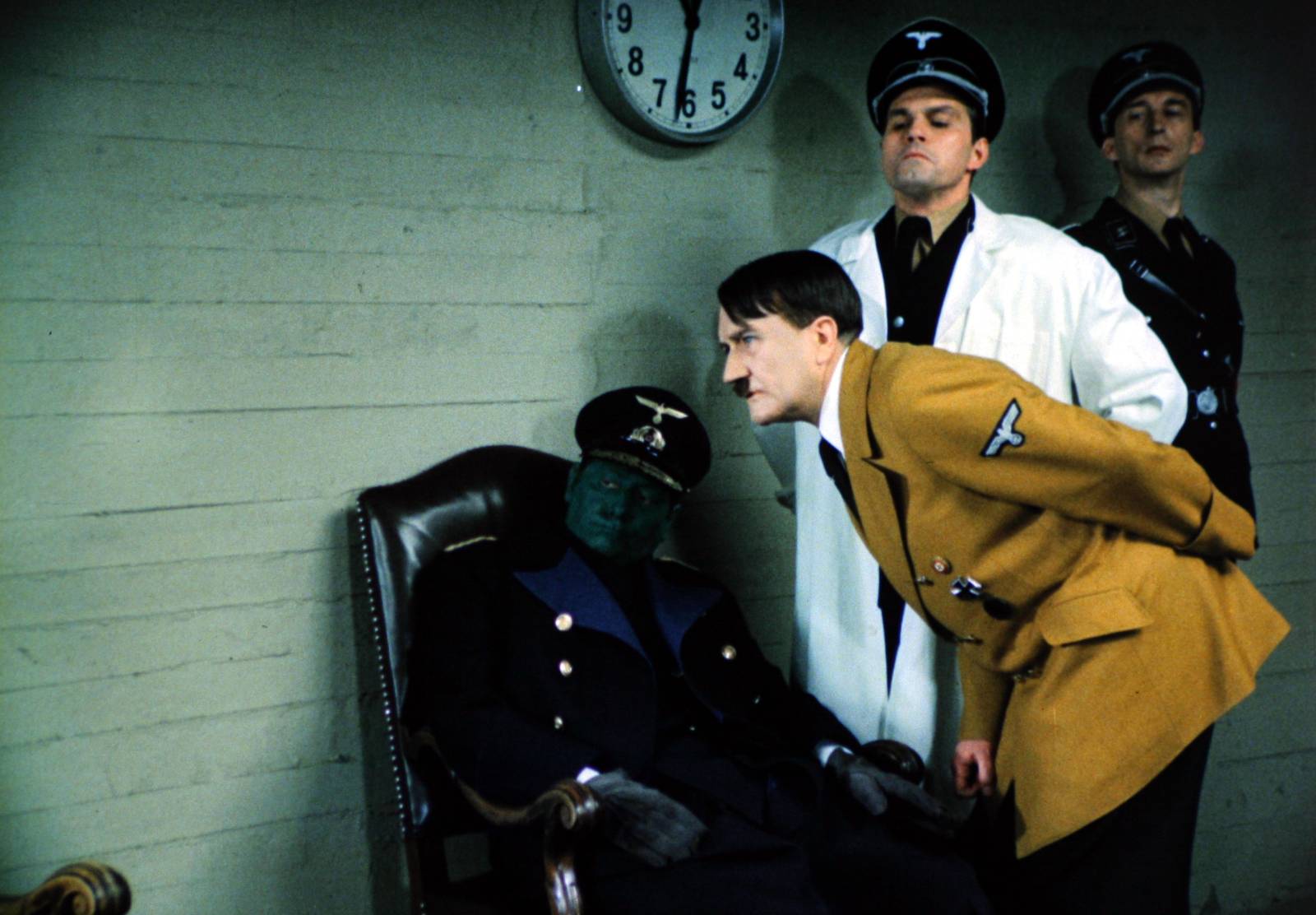 Jedním z nejsilnějších momentů celého natáčení nebyla scéna před kamerou, ale situace v zákulisí. Do role nacistického vůdce Adolfa Hitlera obsadil režisér Františka Vicenu. Maskéři odvedli tak dokonalou práci, že výsledek šokoval i herecké bardy, kteří jinak pro vtip nešli daleko. Když Vicena poprvé vstoupil do místnosti v plné polní, nastalo hrobové ticho.
